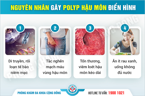 Yếu tố khác: Tắc tĩnh mạch, thiếu máu tại niêm mạc hậu môn – trực tràng hoặc cấu trúc hậu môn cong, hẹp bẩm sinh cũng có thể dẫn tới viêm và hình thành polyp.