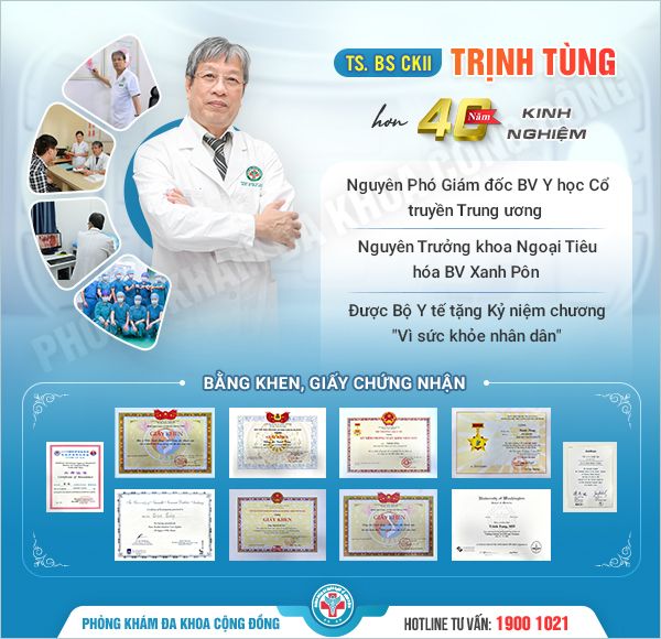Phòng khám Tiến sĩ. Bác sĩ Trịnh Tùng - Chuyên khoa Hậu môn Trực tràng chất lượng cao, quy tụ đội ngũ bác sĩ danh tiếng. Với hơn 40 năm kinh nghiệm, từng giữ vai trò Trưởng, Phó khoa tại nhiều bệnh viện danh tiếng, bác sĩ Tùng sẽ trực tiếp thăm khám và điều trị bệnh lý hậu môn bằng các phương pháp hiện đại nhất. Cam kết mang lại trải nghiệm chăm sóc sức khoẻ chuyên nghiệp, tiết kiệm thời gian, tối ưu chi phí với dịch vụ tư vấn 1 – 1 miễn phí, đặt hẹn trực tuyến nhanh chóng. Chọn chúng tôi, chọn sự an tâm cho sức khỏe của bạn!